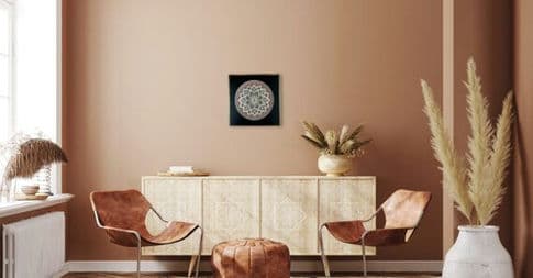 It`s the wall decoration that always matches your mood. The idea of a changeable background will appeal to anyone who values choice above all else and loves changes and updates. With the simple move of your hand, you can transform the mandala. On the side of the product there is a pocket where you can insert a replacement sheet of a different color. We send you three colors, but feel free to use any of the desired colors for the background. An innovative ability to change it in accordance with your internal state, season, mood, color of walls or other interior items around.