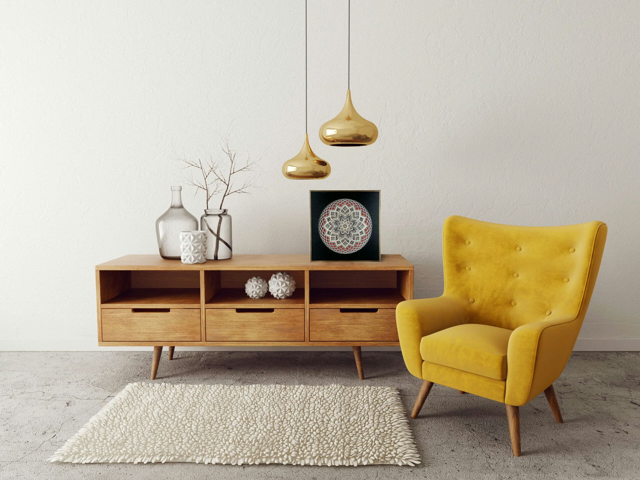 Elegant decor for the interior. Laconic black frame and elegant jewelry lines. The perfect gift for people who love Sacred Geometry or just beautiful design