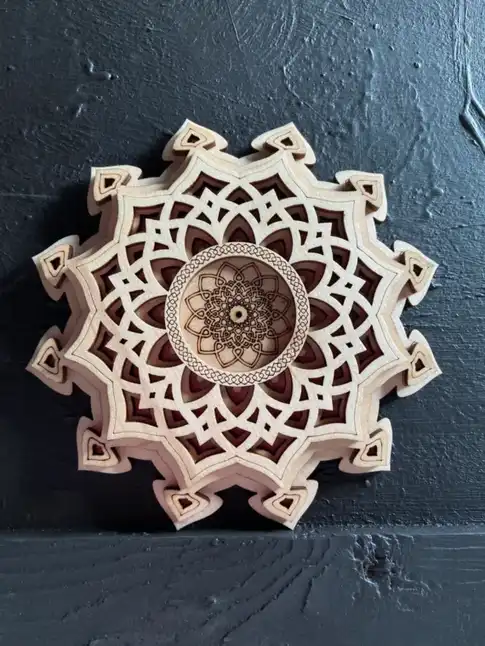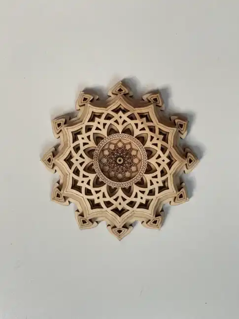 The incense holder is carved on a laser machine. Three separate parts. Each part has undergone a complete cycle of manual processing.