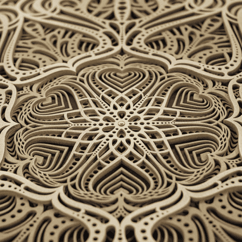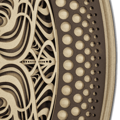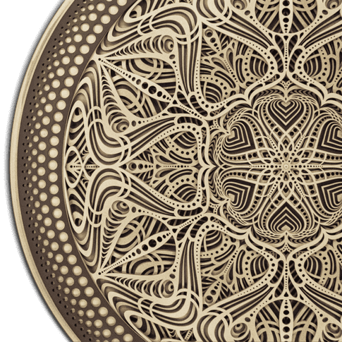 - Material: wood. Wooden frame and laser-cut MDF layers