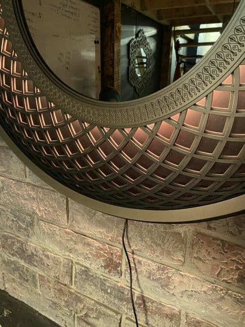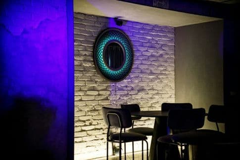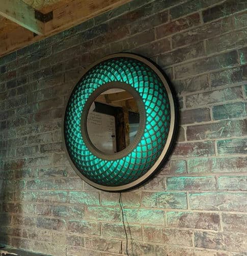 Suitable for loft style, hi-tech, techno, disco, op art, and minimalism. Creates a stylish and noticeable interior anywhere. For a restaurant, club, reception, beauty salon, barber shop and etc.. Also can be used in home decor, bathroom, bedroom, living room, and modern kitchen. This product has a triple function: as a mirror, a lamp and an art object.
