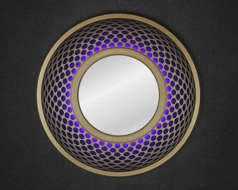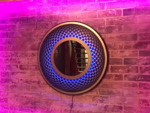 Suitable for loft style, hi-tech, techno, disco, op art, minimalism. Creates a stylish and noticeable interior anywhere. For a restaurant, club, reception, beauty salon, barber shop and etc.. Also can be used in home decor, bathroom, bedroom, living room, modern kitchen. This product has a triple function: as a mirror, a lamp and an art object.