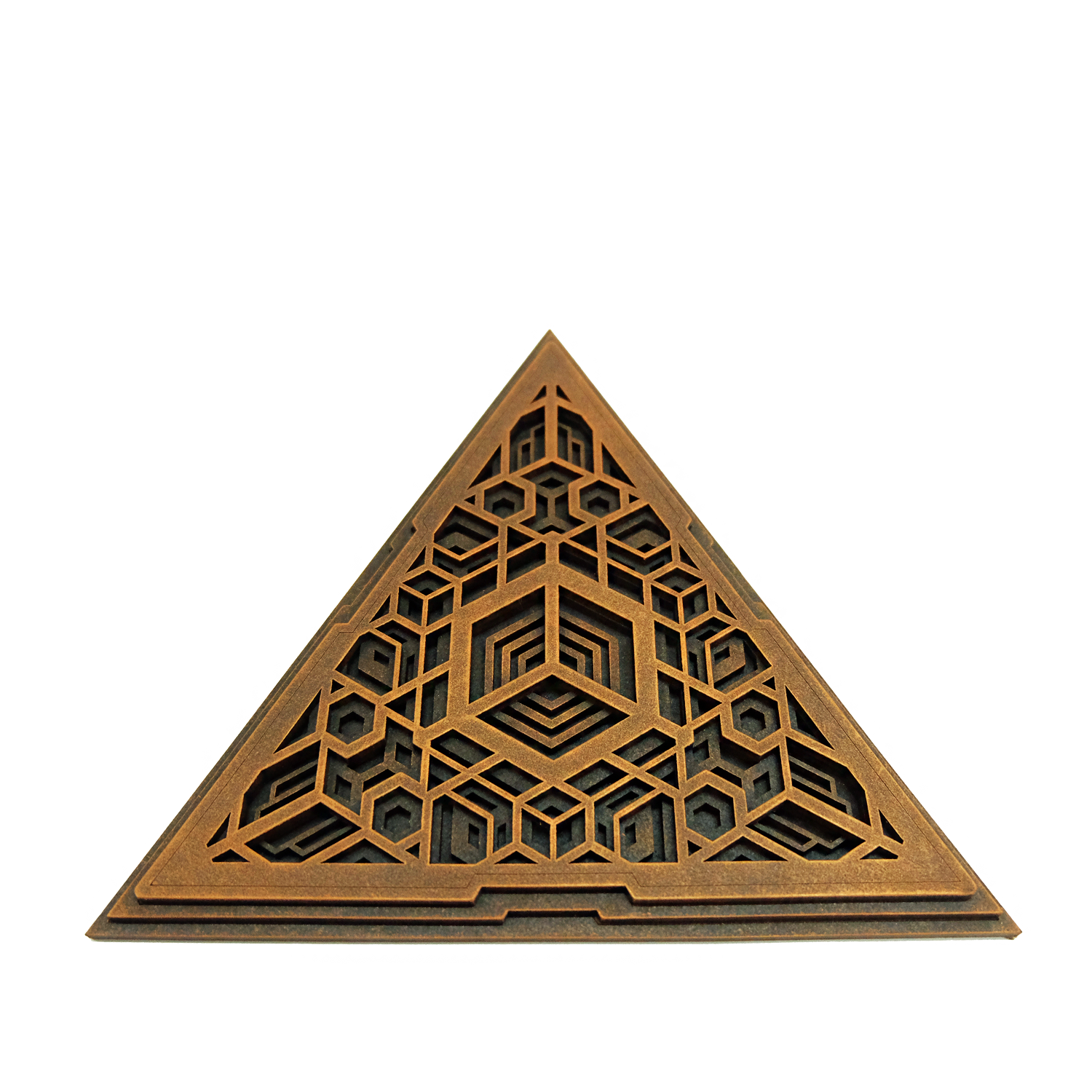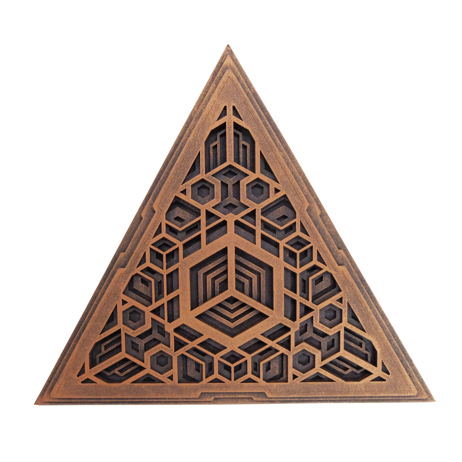 Multilayer wooden panels for LED Lamp Entheogen 60cm. Wall decorative panels 160x139cm. Custom order. Imitation brass paint.